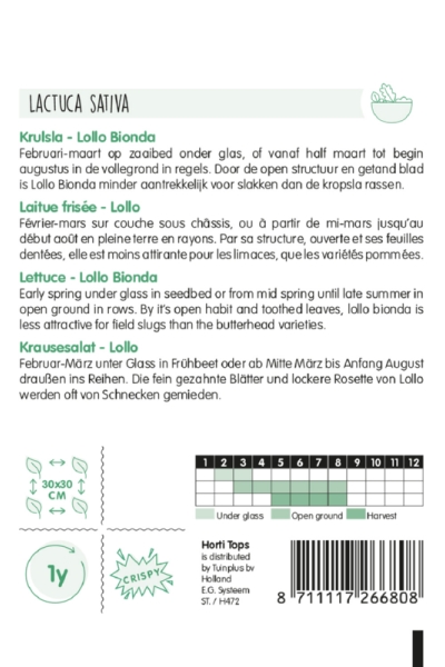 Listový kučeravý šalát. Svojou voľnou hlávkou a zúbkatými listami je menej atraktívny pre slizniakov ako hlávkové šaláty.