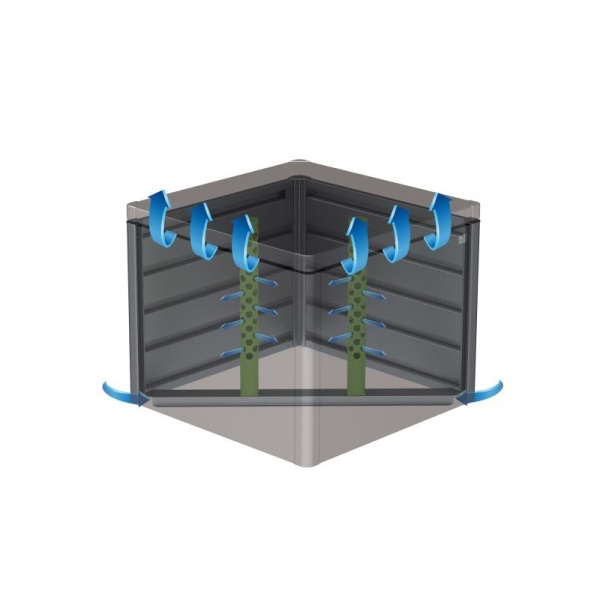 Integrované vetracie rúry zabezpečujú optimálny prísun kyslíka a cirkuláciu vzduchu, čo umožňuje efektívne kompostovanie.